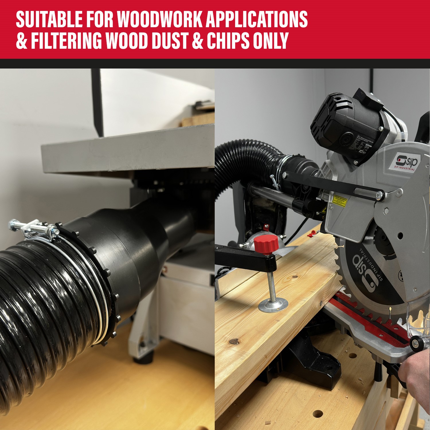 Ideal for use with bench-top machinery. Suitable for woodworking dust and chips only.