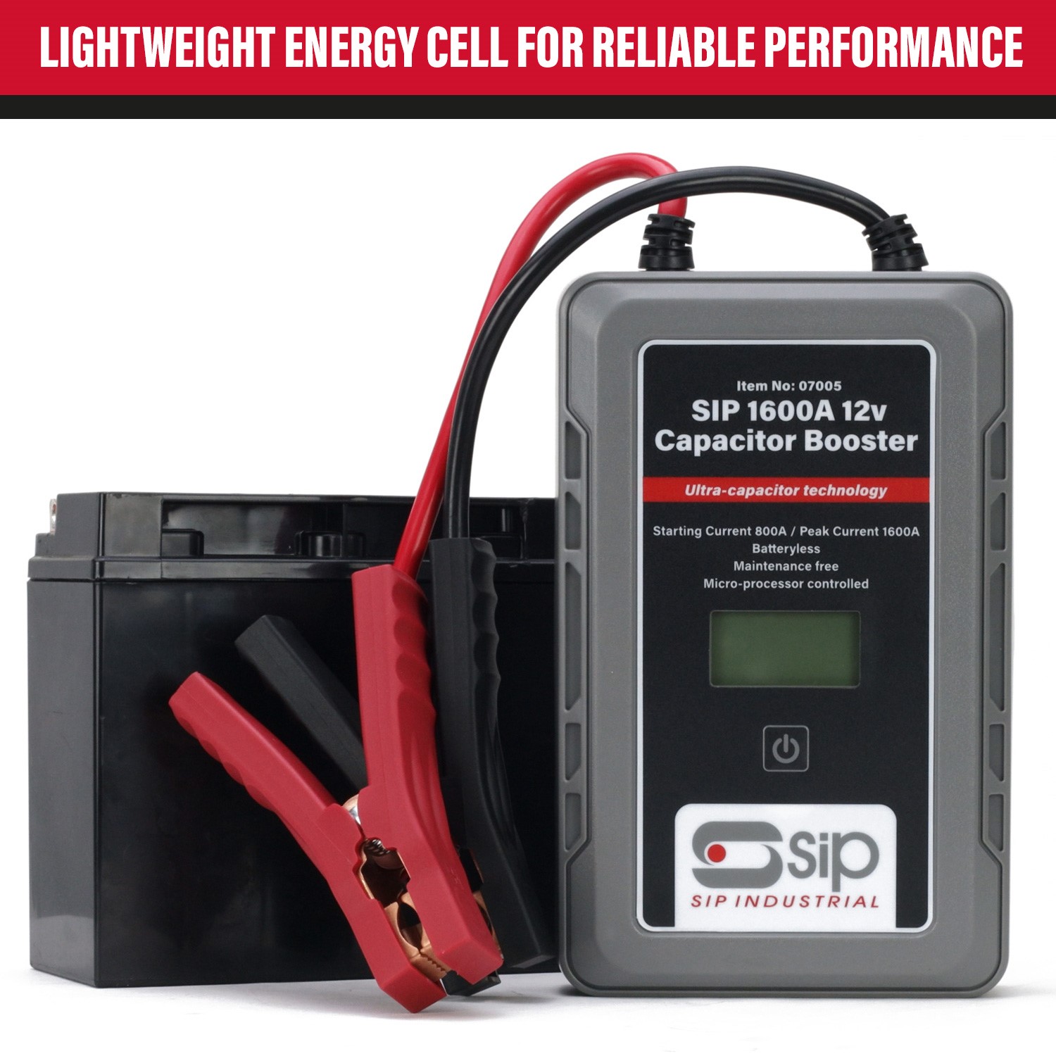 The SIP 1600A 12v Capacitor Booster is an innovative handheld portable device designed to discharge a high current boost needed to start a large car or large plus agricultural or construction equipment.