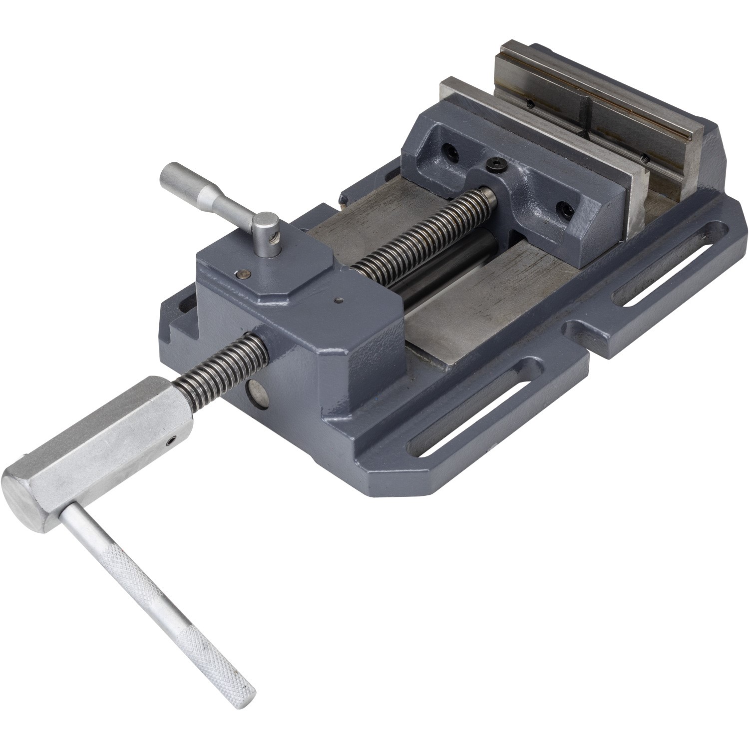It easily slides into position against the workpiece to boost efficiency by reducing set-up time required when machining or during changeovers. The slotted base helps to maintain drilling accuracy and safety, and can be secured to the drill press table for added stability.
