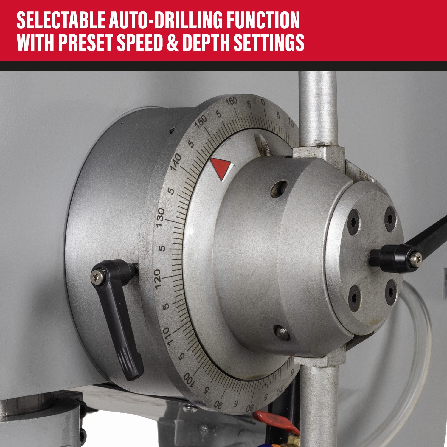 The drill also features an auto-drilling function which increases workshop efficiency and is ideal for repetitive work.