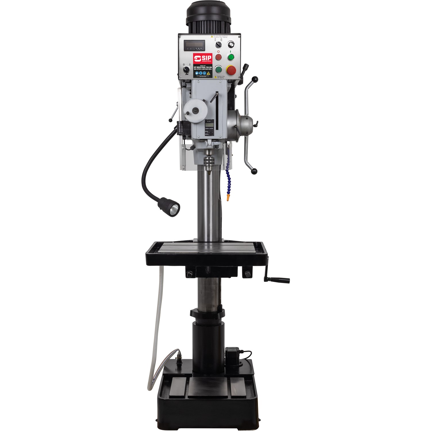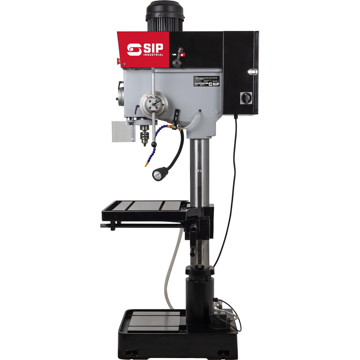 What's in the box?: 1x SIP Industrial F40-IDA Vari-Speed 2.2kW 400v Floor Pillar Drill (400v/16A), 1x drill chuck (compatible with Morse Taper 4), 1x drill drift, 1x chuck key, 1x, cranking handle, 1x Y-type socket wrench and 2x handles for headstock and table.