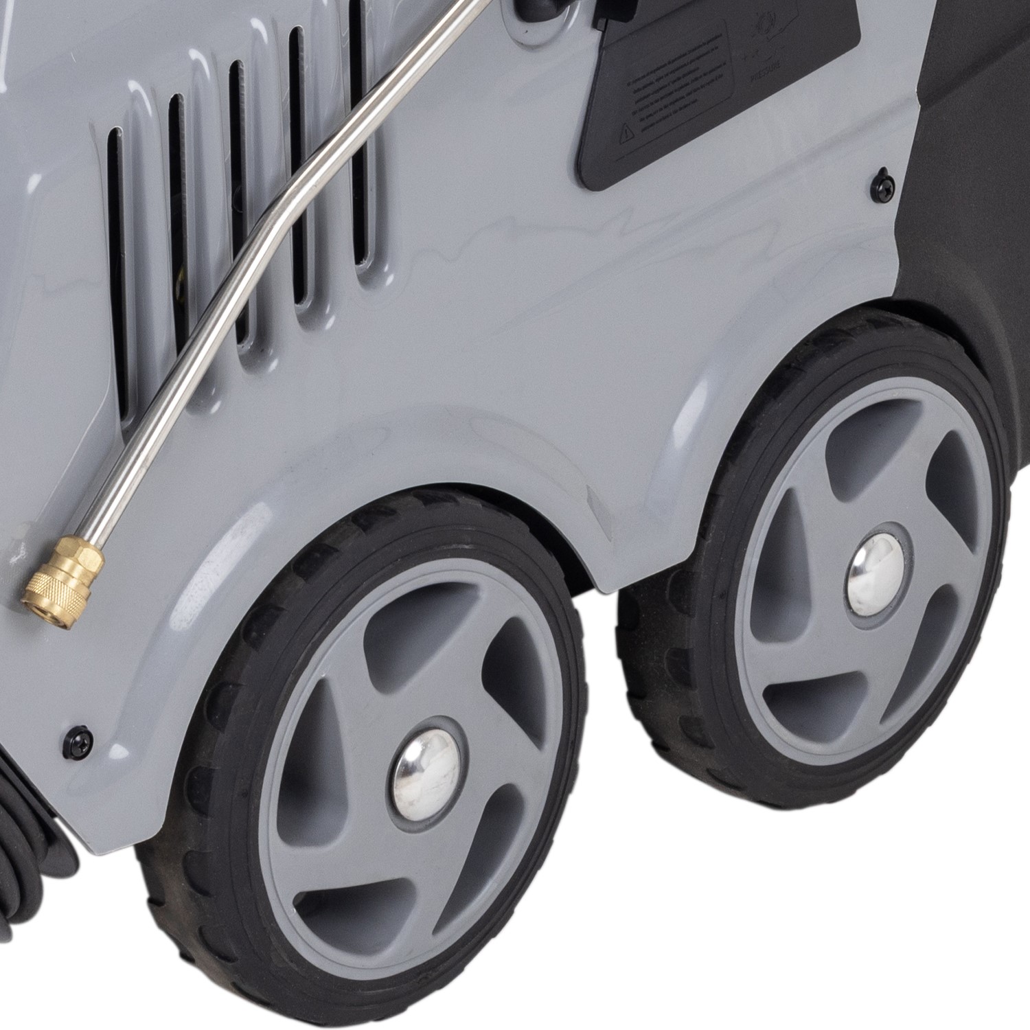 For increased mobility over uneven surfaces and bumps, the PH720/150 is mounted on 4 wheels and fitted with a large handle for easy steering. To prevent tangling or trip hazards, it is designed with storage solutions for the lance, power cable and the 4 interchangeable nozzles included.