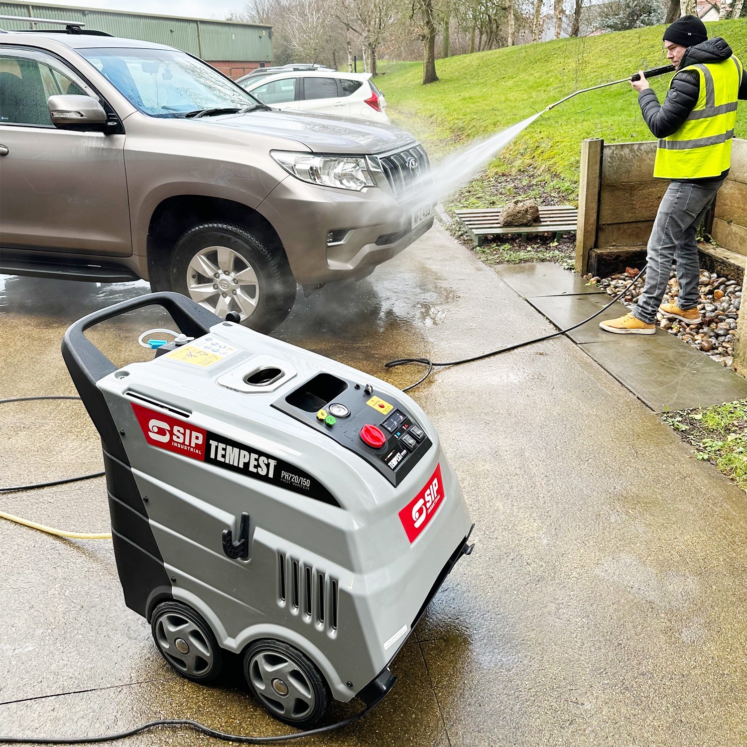 The SIP TEMPEST® PH720/150 Hot Water Electric Pressure Washer provides hot and cold water performance through a diesel-fired boiler that heats from 30 to 98°C, ensuring optimised cleaning of stubborn, deep-seated grime, dirt, moss or organic matter in commercial and industrial environments.