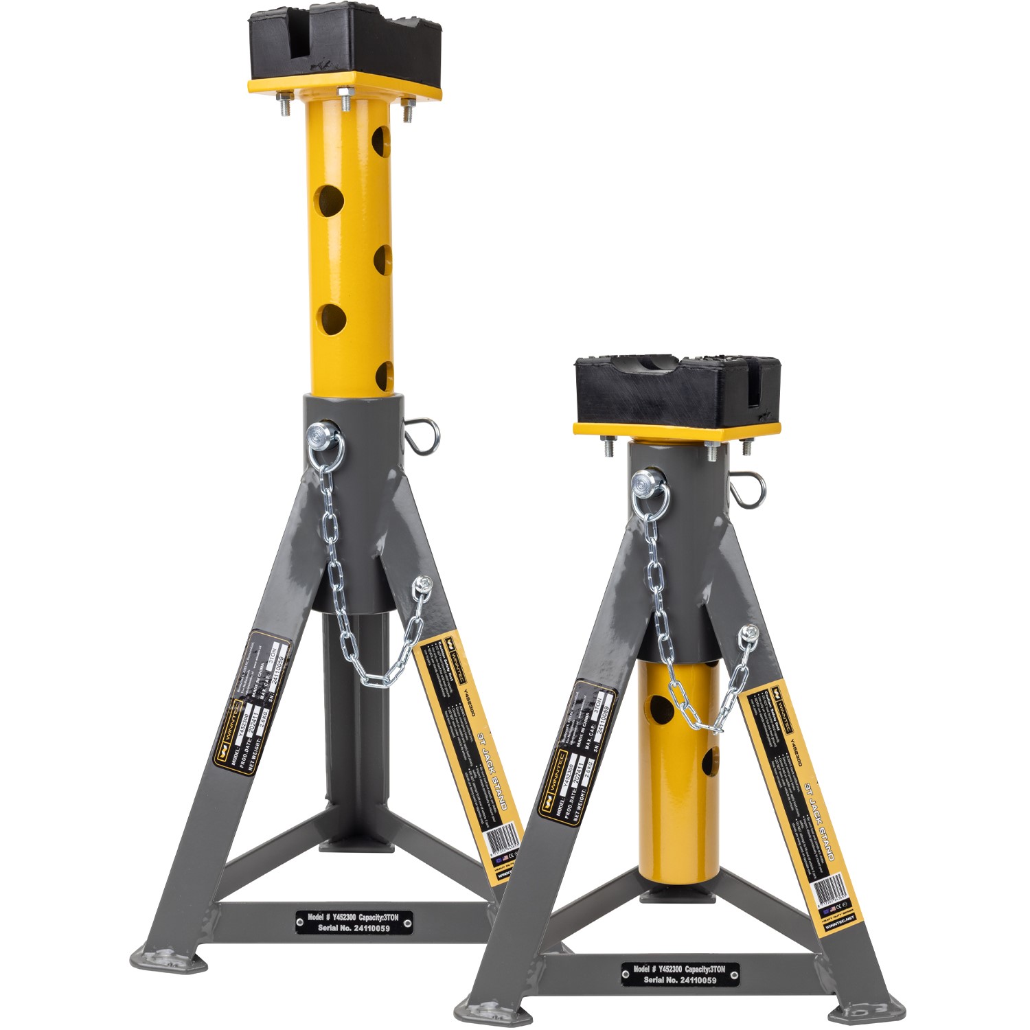 HEAVY-DUTY JACK STANDS FEATURING A SOLID BAR PIN DESIGN & 6 HEIGHT ADJUSTABLE POSITIONS TO ENSURE SAFETY & STABILITY UNDER LOAD