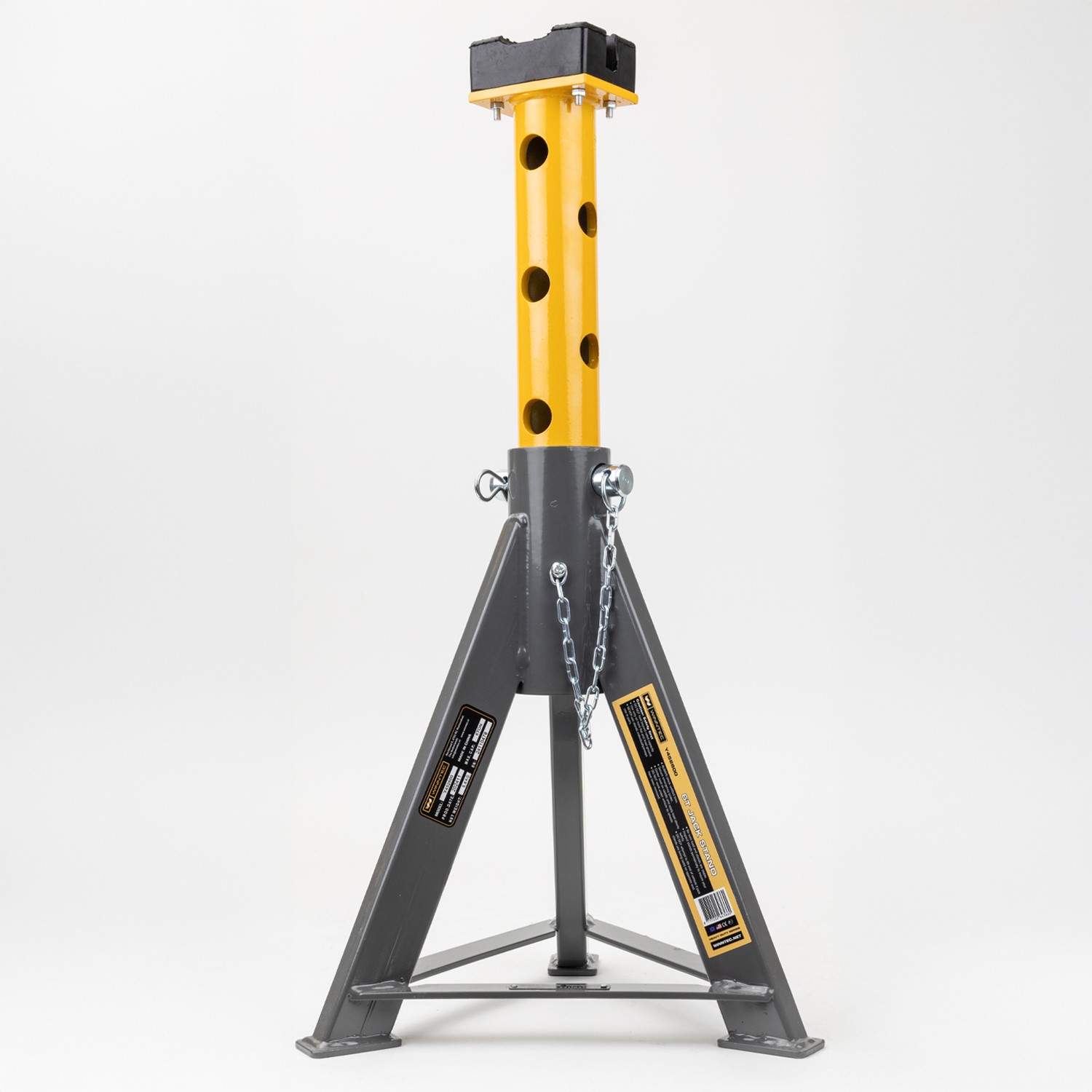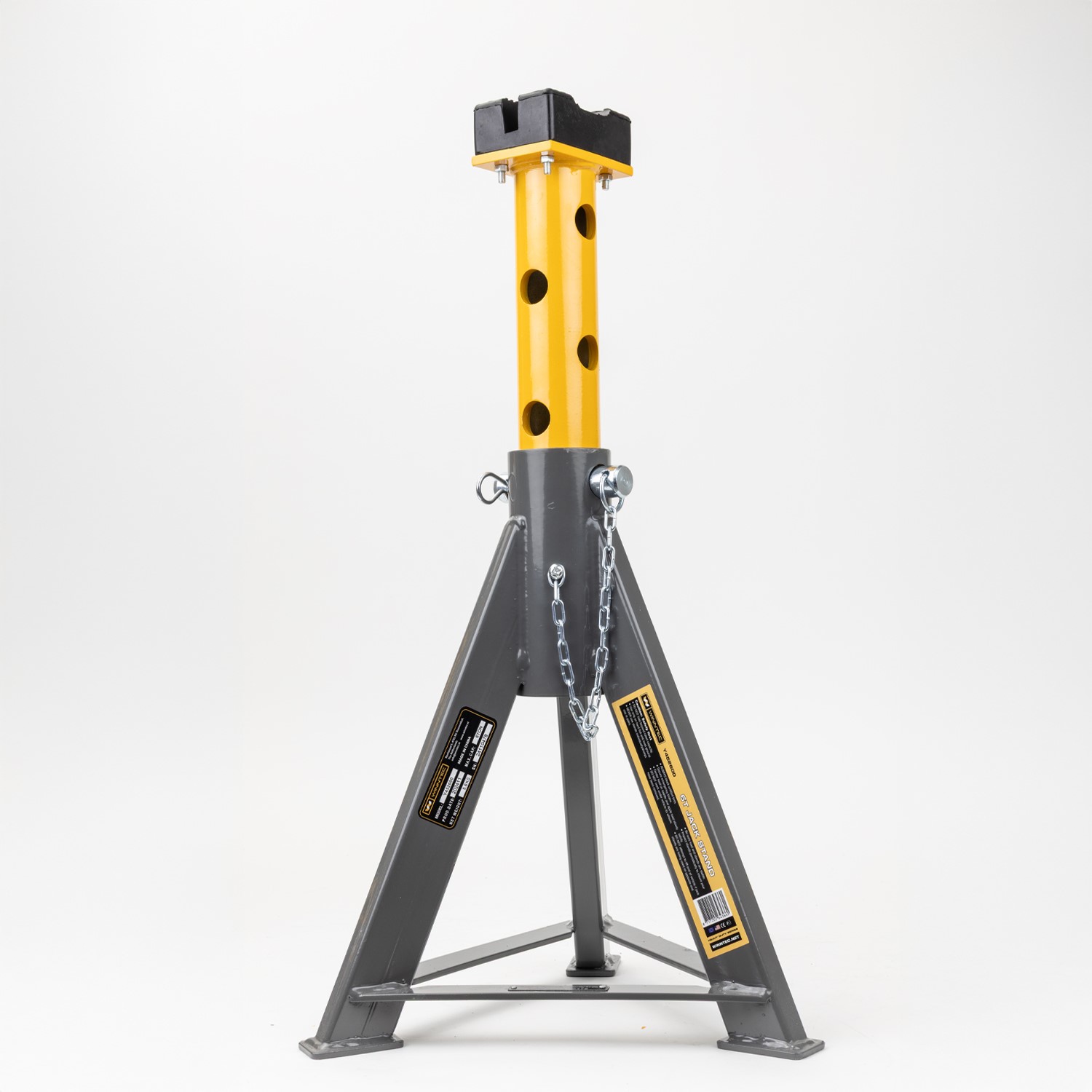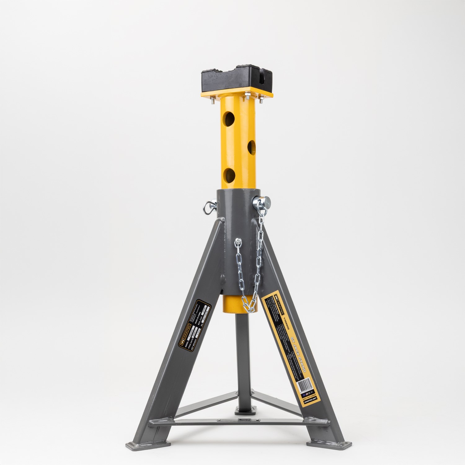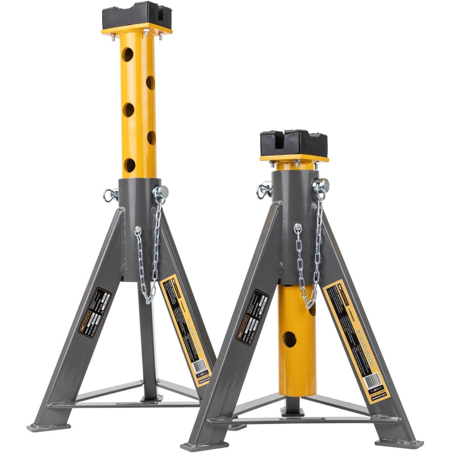 HEAVY-DUTY JACK STANDS FEATURING A SOLID BAR PIN DESIGN & 6 HEIGHT ADJUSTABLE POSITIONS TO ENSURE SAFETY & STABILITY UNDER LOAD