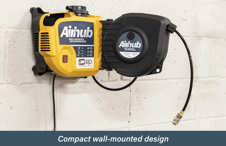 Lightweight and easy to install, the SIP AirHub Wall-Mounted Compressor is a convenient, multipurpose compressed air solution.