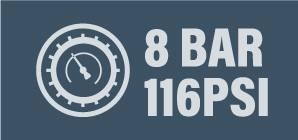 - Compact Design: provides 8bar pressure in a handy space-saving format